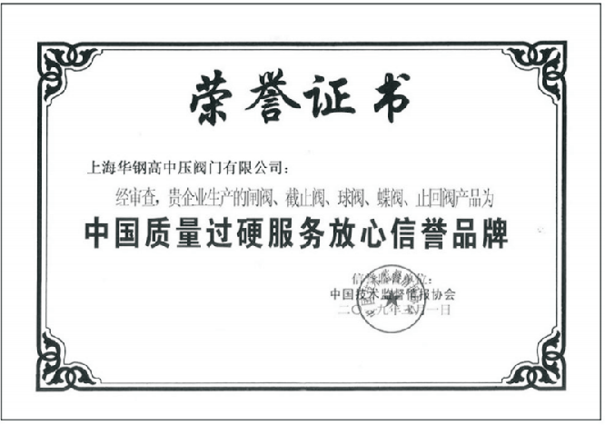 質(zhì)量過硬服務(wù)放心信譽品牌榮譽證書