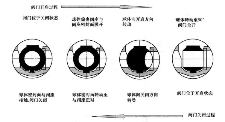 (3).軌道式無摩擦球閥的工作原理如圖所示: